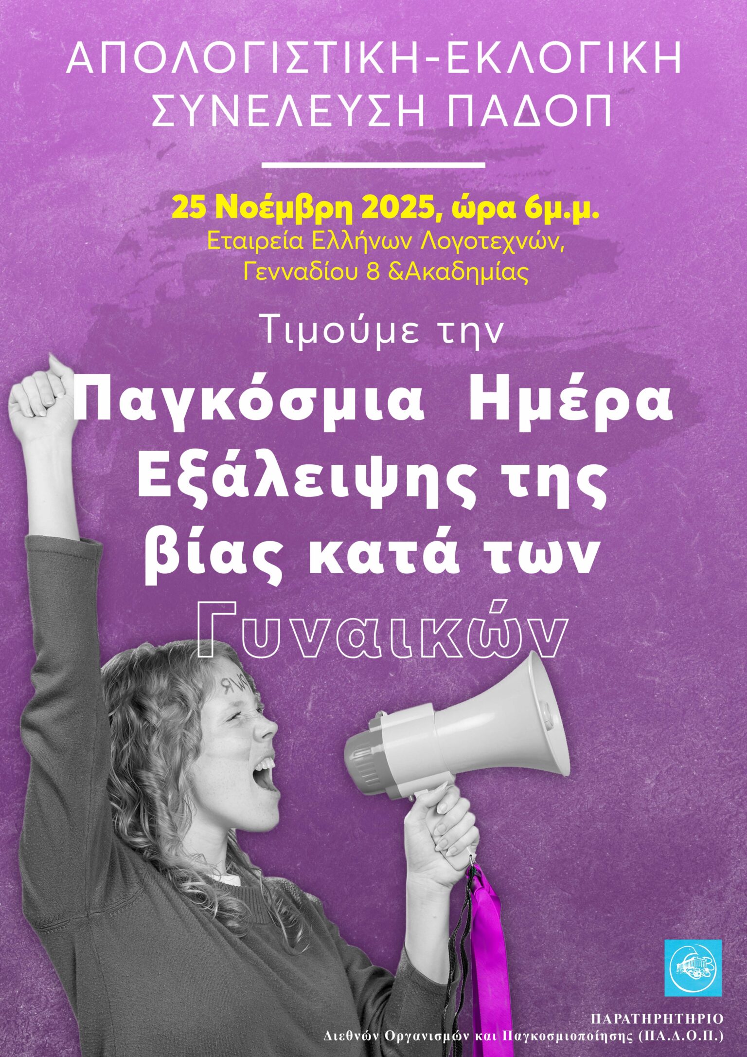 Θυμίζουμε επίσης ότι η 25η Νοεμβρίου είναι η Διεθνής Ημέρα για την εξάλειψη της Βίας κατά των Γυναικών, ημέρα που έχει καθιερωθεί από τον ΟΗΕ για την ευαισθητοποίηση της κοινωνίας σχετικά με την παγκόσμια διάσταση του προβλήματος της βίας κατά των γυναικών και των κοριτσιών. Για τον λόγο αυτό, των εργασιών αρχαιρεσιών θα προηγηθεί σύντομη ομιλία του προέδρου του ΠΑΔΟΠ Πάνου Τριγάζη, αφιερωμένη στην Παγκόσμια Ημέρα.