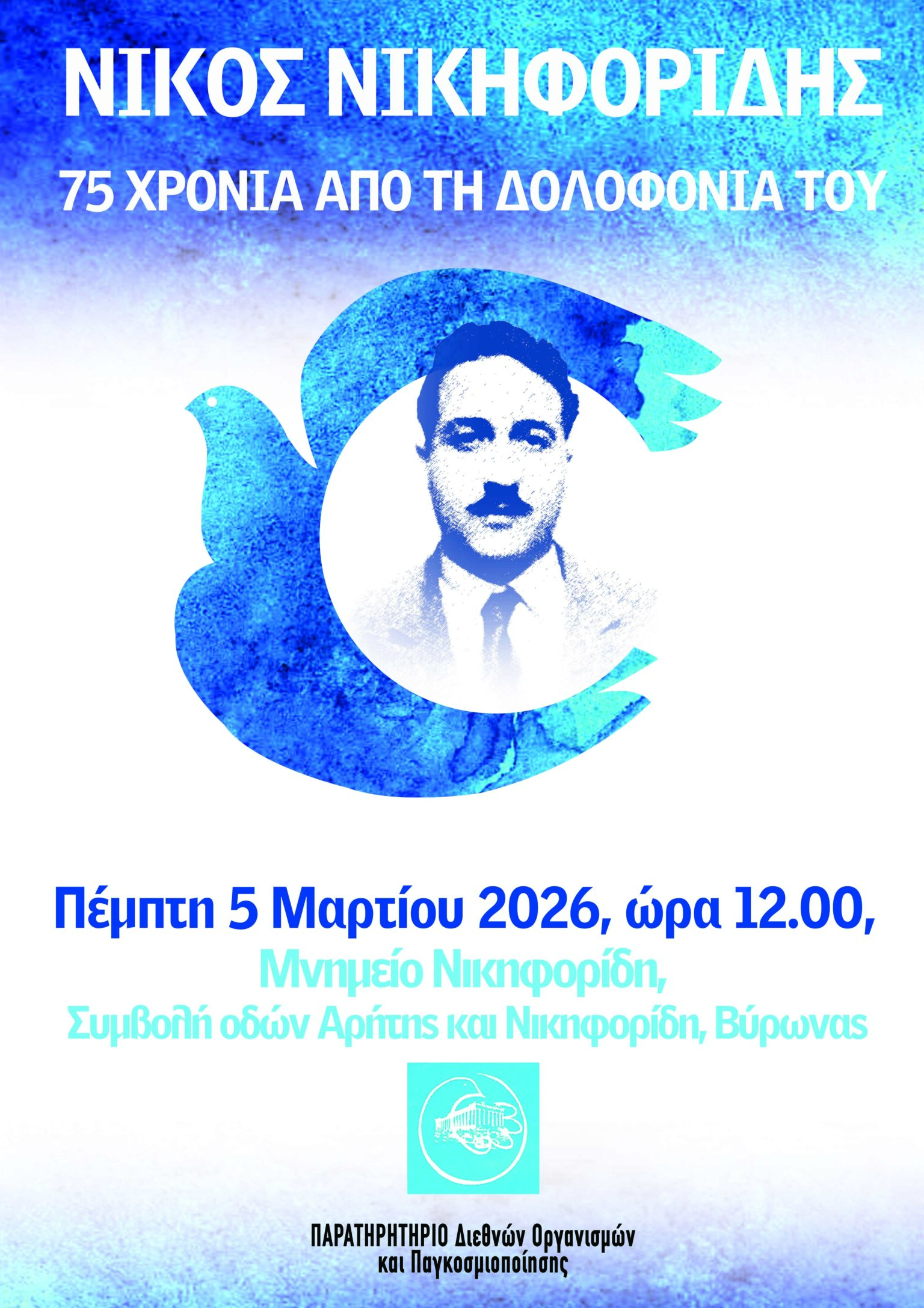 Με αφορμή την συμπλήρωση 75 χρόνων από την δολοφονία του 22χρονου ήρωα της ειρήνης Νίκου Νικηφορίδη, Βυρωνιώτη, Παγκρατιώτη και Κωνσταντινουπολίτη,